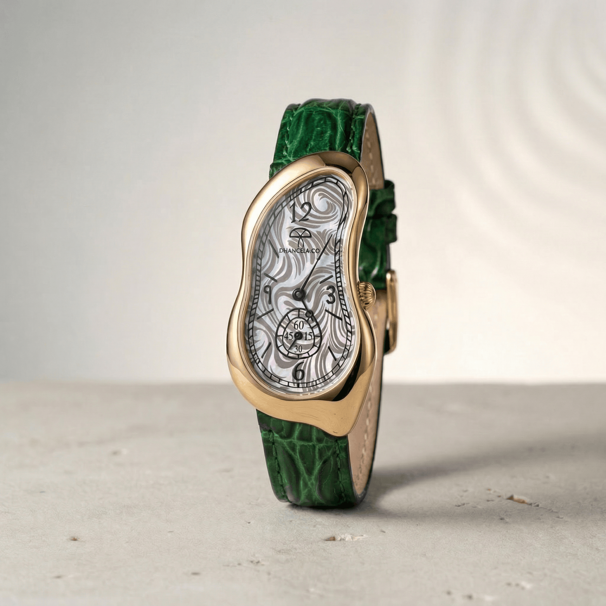 Drawing from the enchanting textures of seashells, the Conchiglia features a white shell dial that resembles the luxurious sheen of mother-of-pearl. The watch shape is inspired by the natural, wavy distortions found in seashells, bringing a piece of the ocean's mystique to your wrist.